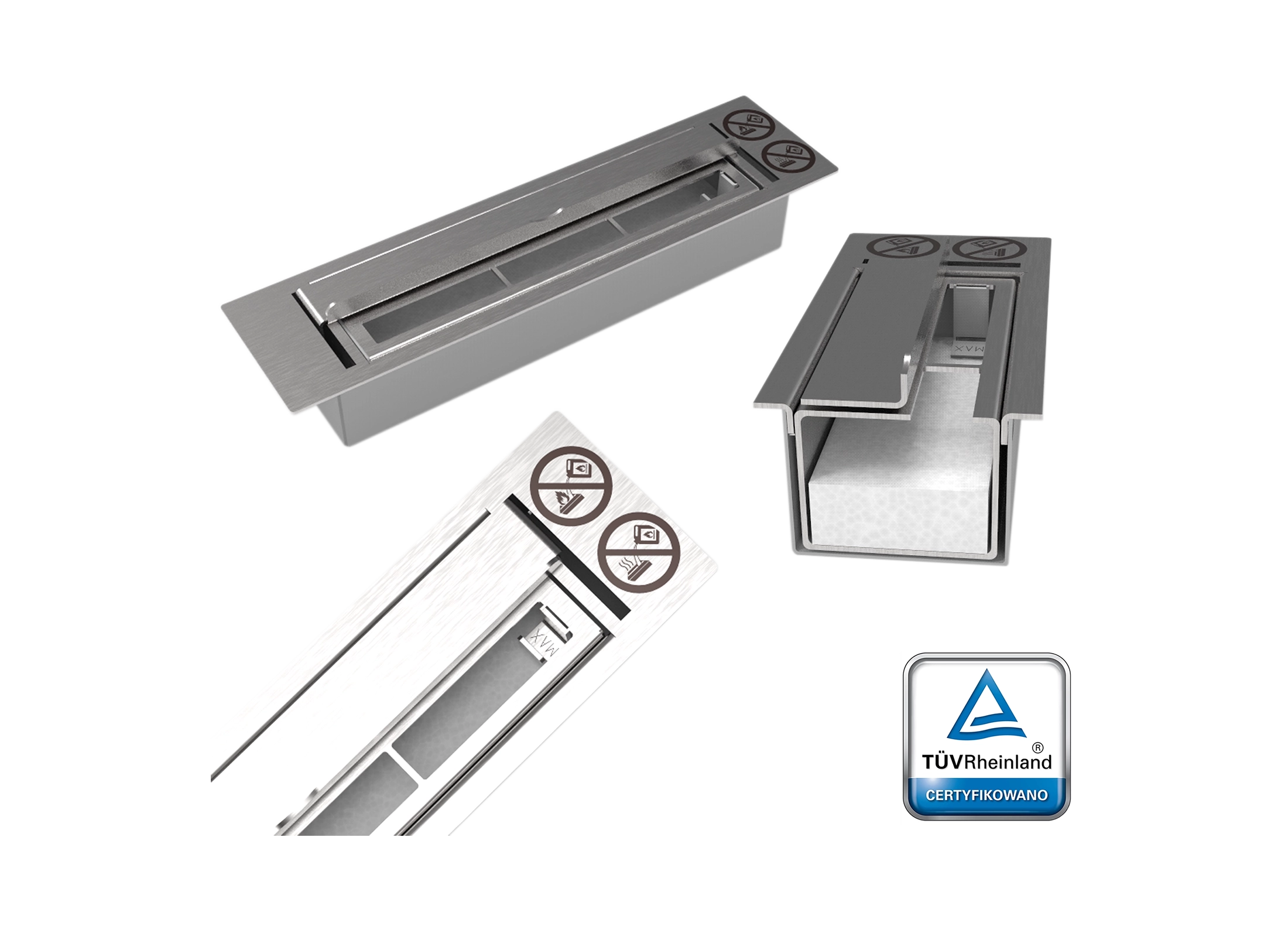 Biokominki wiszące naszej produkcji posiadają palnik z Certyfikatem Bezpieczeństwa TUV, wystawiany przez renomowane laboratorium TUV Rheinland badające aspekty bezpieczeństwa naszych towarów. Palnik posiada również podwójne dno oraz wkład chłonny, które chronią przed niepożądanym rozlaniem się biopaliwa.