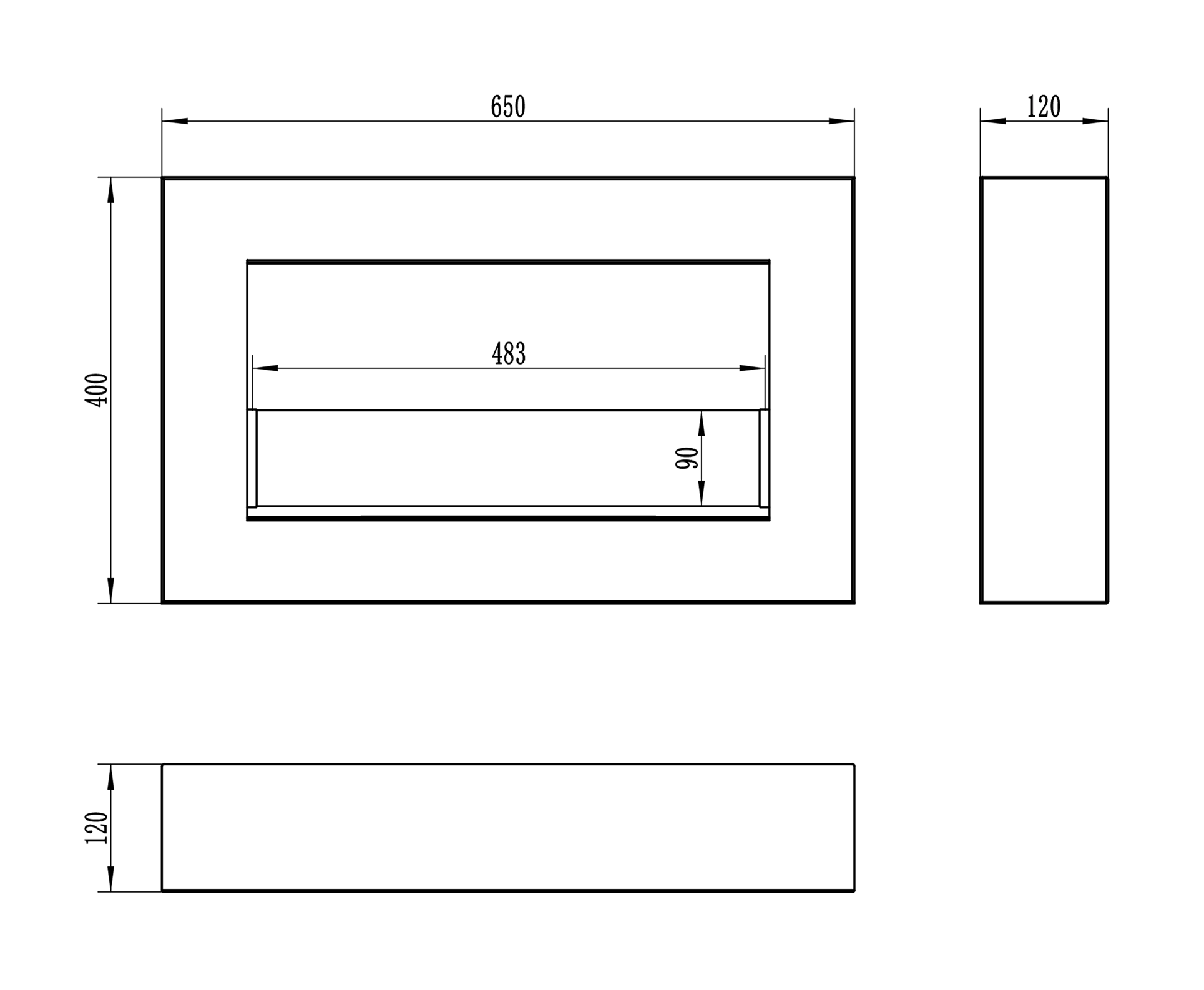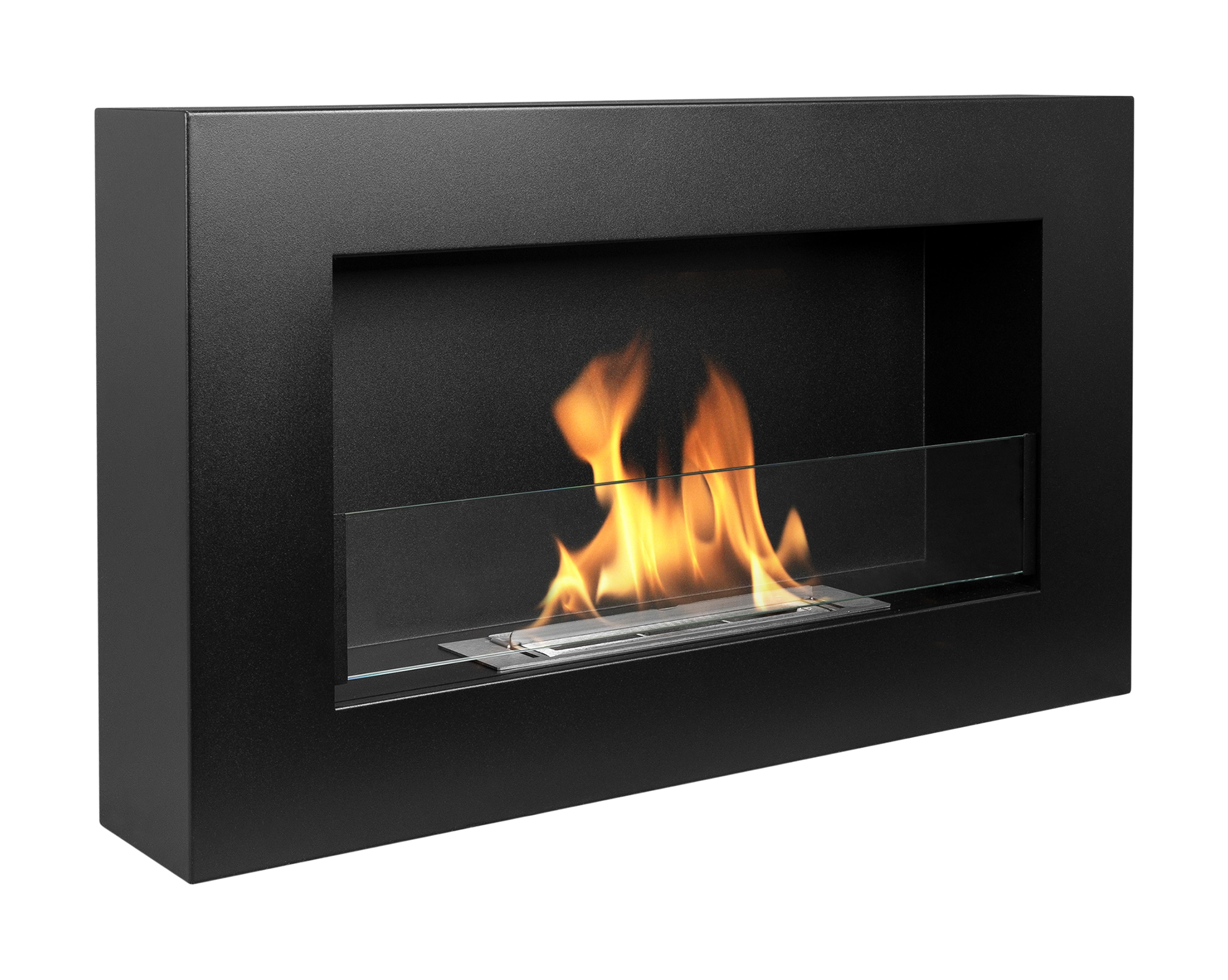 Biokominek wiszący z szybą 650×400 Box czarny strukturalny mat