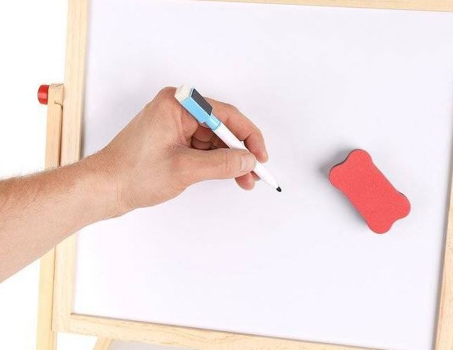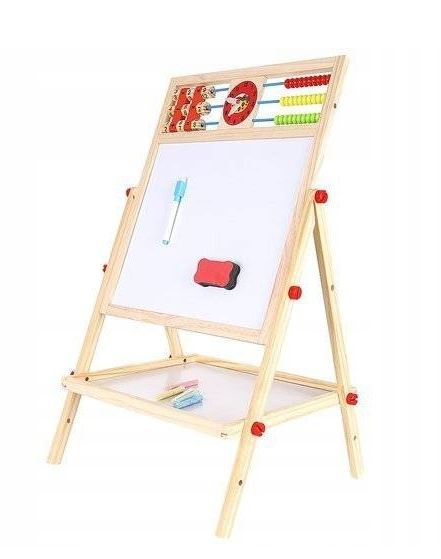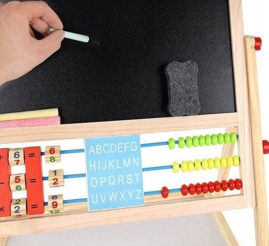 DWUSTRONA TABLICA KREDOWAMAGNETYCZNA DO RYSOWANIA wustronna tablica do rysowania posiada aż 6 FUNKCJI!: PISANIE KREDĄ PISANIE MAZAKAMI(po białej stronie) LICZYDŁO Z KORALIKAMI ZEGAR MANUALNY ALFABET TABELKA Z DZIAŁANIAMI (mnożenie/dodawanie/odejmowanie) W ZESTAWIE tablica dwustronna mazak z magnesem gąbka z magnesem 5 kred Wymiary(dł/szer/wys): 32/41/67cmWaga: 1,2kgWiek: 3+