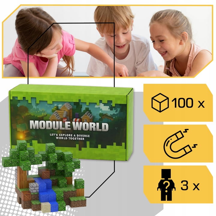100 kolorowych klocków  Z magnesem dla stabilnego połączenia  Kompatybilność z innymi zestawami magnetycznymi  Certyfikat CE  Od 3. roku życia