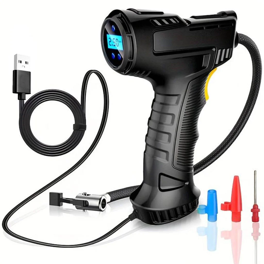 Specyfikacja Moc: 120 W Przepływ gazu: 20 L/min Czas ładowania: 3-4h Czas użycia: 20 minut W zestawie: końcówki do pompowania kabel usb kompresor Długość przewodu zasilającego: 100 cm Długość wężyka: 36 cm Wymiary: 13,2 cm x 5,3 cm x 20,3 cm Kolor: czarny