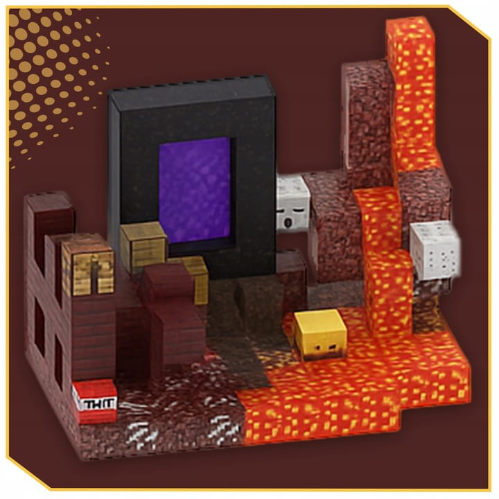 ⮕ Zestaw zawiera różne klocki, które pozwalają na zbudowanie naturalnego środowiska (m.in. bloki trawy, drewna, liści) oraz różne akcesoria (tj. piec, stół warsztatowy, książki).
