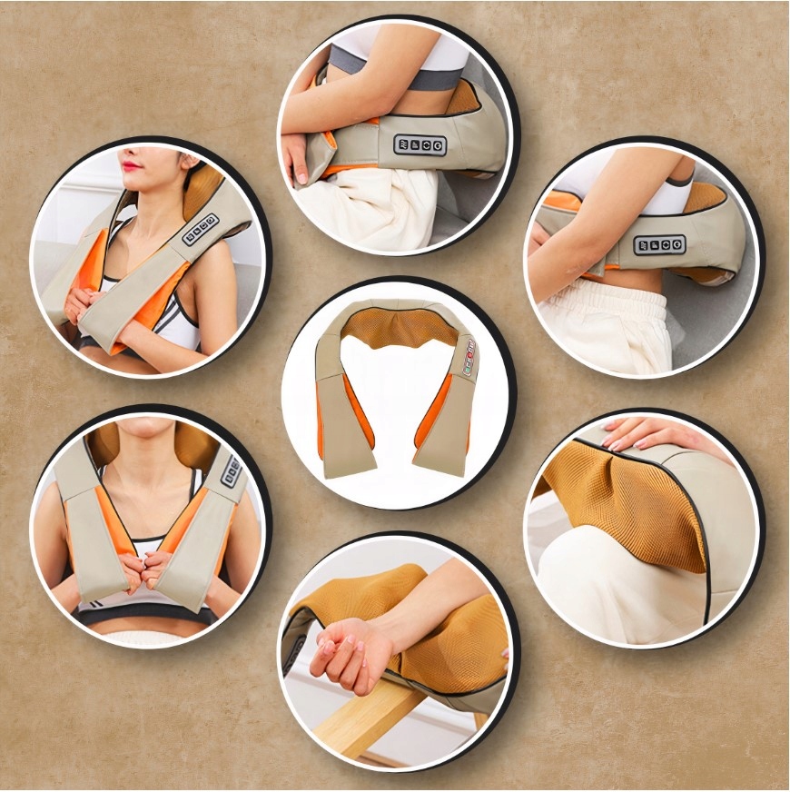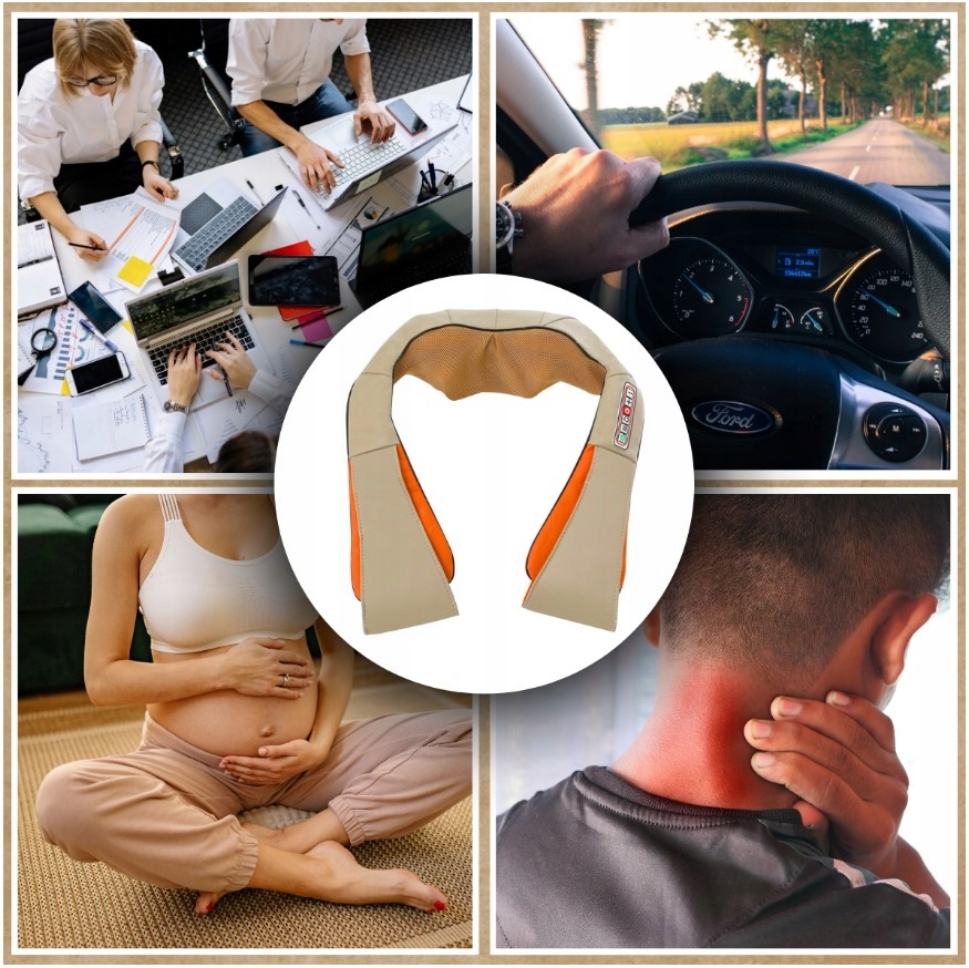 MASAŻER KARKU PLECÓW SZYI SHIATSU ELEKTRYCZNY MASAŻER DO RAMION BEŻOWY