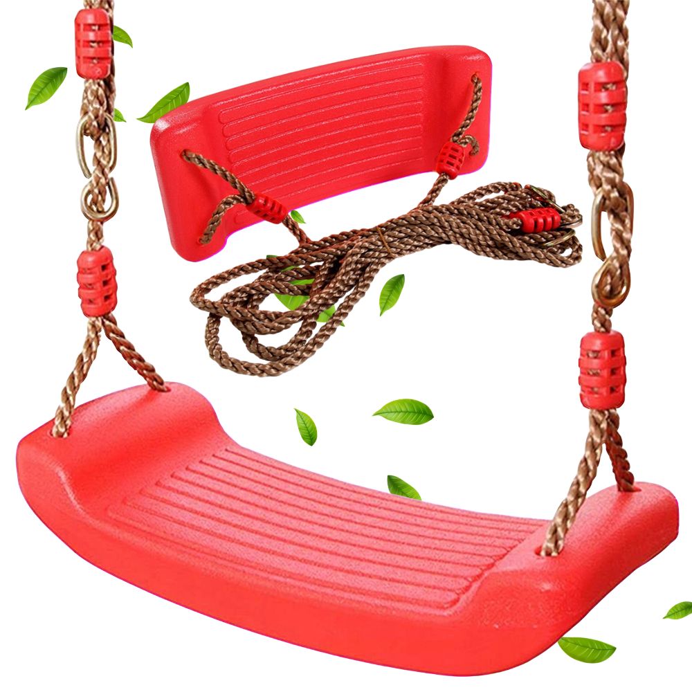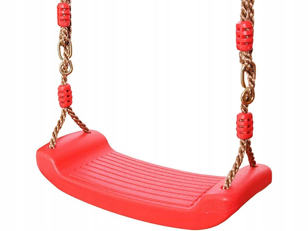 HUŚTAWKA OGRODOWA CZERWONA DLA DZIECI DESKA MOCNA BUJAK PLASTIKOWY Z LINAMI