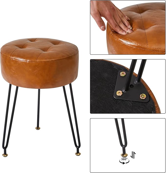 Napisz pierwszą opinię o „Okrągły Stołek, podnóżek ze sztucznej skóry, stolik boczny do toaletki, siedzisko, pufa, złote stalowe nogi, jasnobrązowy”