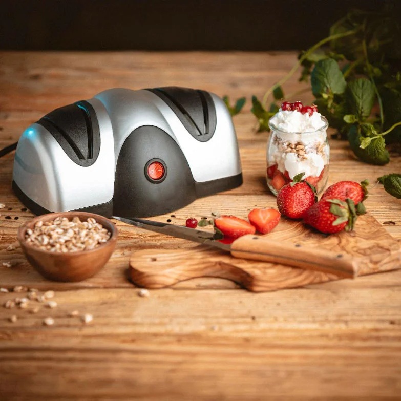 Wymiary ostrzałki: 21 cm x 14,8 cm x 8,5 cm Zasilanie: 230V – Standardowe zasilanie pasujące do większości domowych gniazdek. Dwustopniowy system ostrzenia i polerowania – Gwarancja precyzyjnej i efektywnej pracy. Precyzyjne prowadzenie pod idealnym kątem – Doskonałe ostrzenie bez ryzyka uszkodzenia noża. Antypoślizgowe przyssawki – Stabilność i bezpieczeństwo podczas użytkowania.