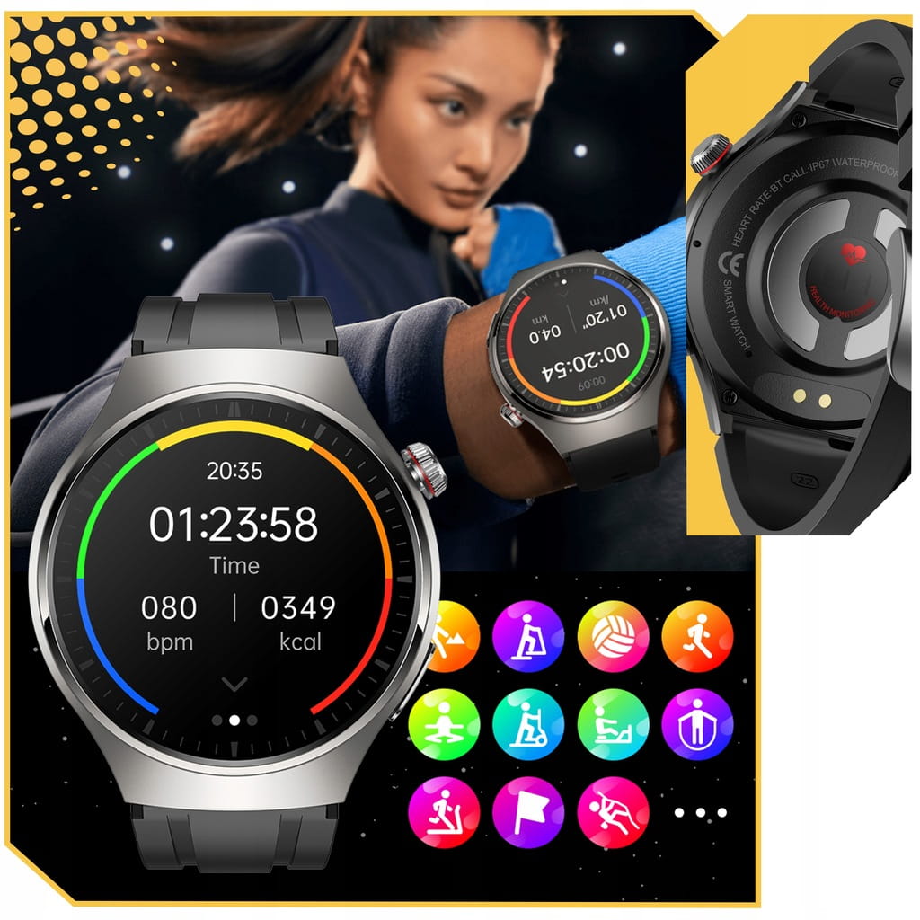 Nowoczesny smartwatch męski, który łączy elegancki design z zaawansowanymi funkcjami zdrowotnymi i sportowymi. Umożliwia prowadzenie rozmów telefonicznych bezpośrednio z poziomu zegarka oraz całodobowe monitorowanie najważniejszych parametrów organizmu. To idealne rozwiązanie dla osób, które chcą lepiej kontrolować swoje zdrowie, aktywność fizyczną i codzienne powiadomienia.