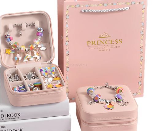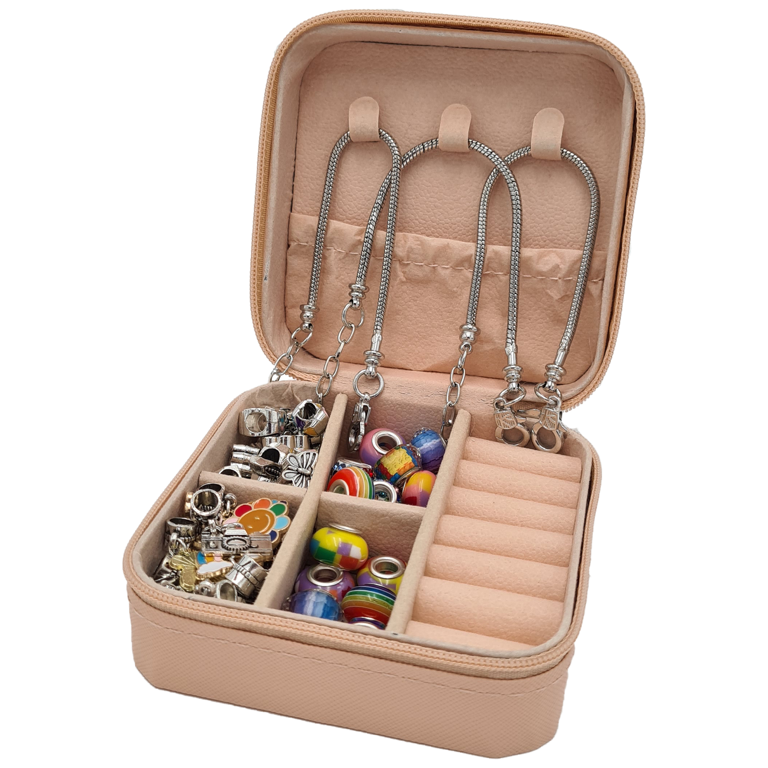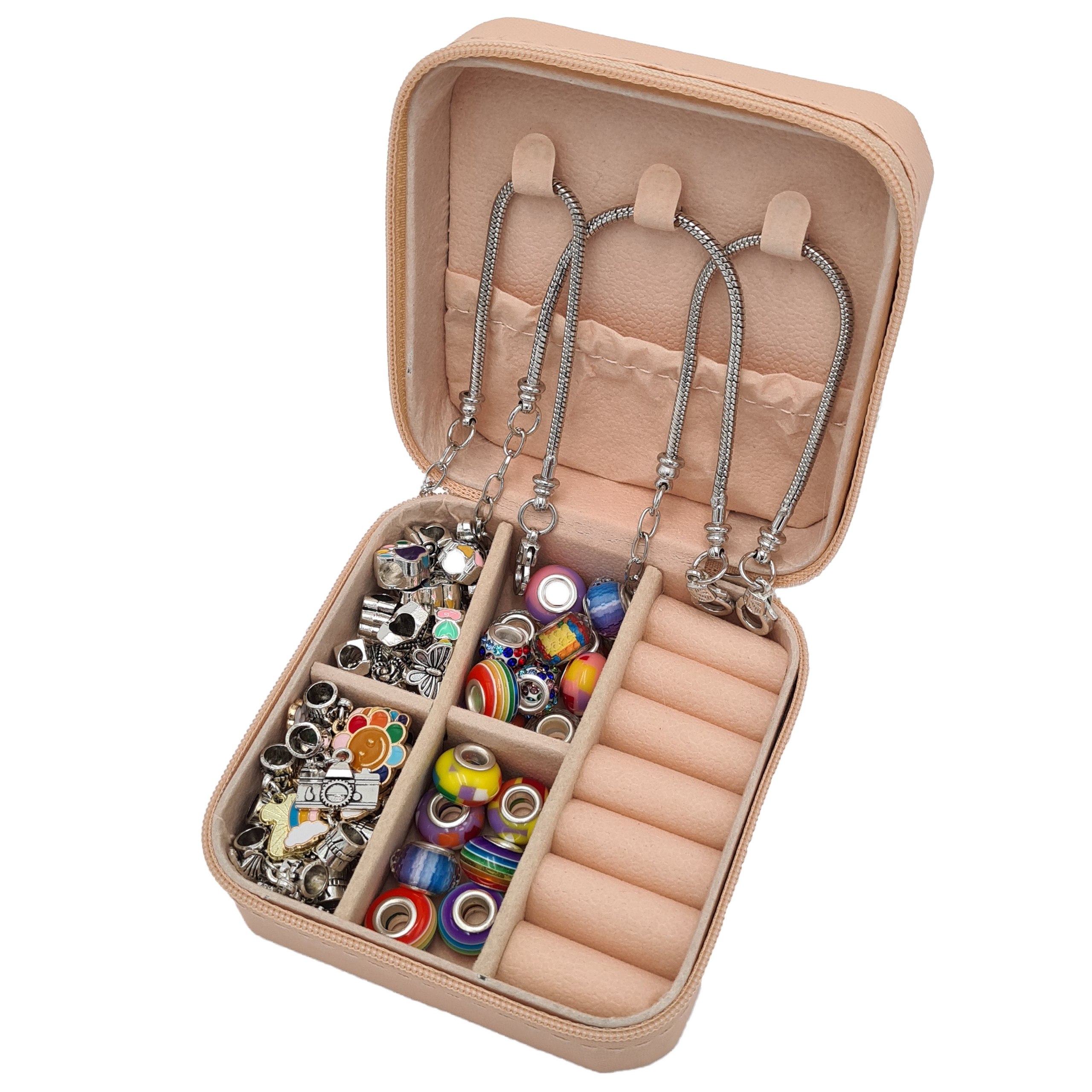 ZESTAW DO TWORZENIA BIŻUTERII ROBIENIA BRANSOLETEK TYPU CHARMS 66 ELEMENTÓW + TORBA NA PREZENT